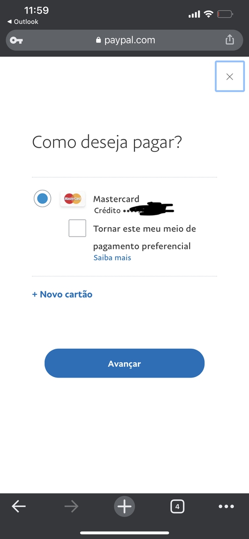 Pedi uma comida que deu por volta de 60 reais e escolhi para pagar com PayPal.