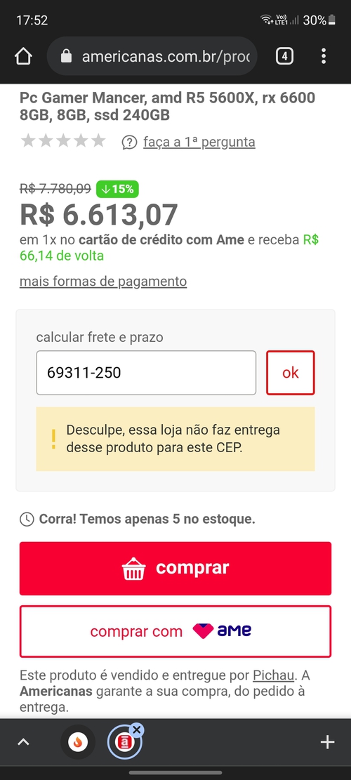 Está num preço bacana! As peças somadas ficam em torno de 6.6k. Se colocar +8gb ram fica top, perfeito para jogar 1080p com tudo no máximo.