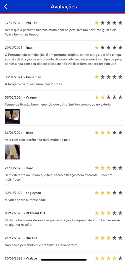 Perfume excelente, porém é Eau de Toilette. Algumas pessoas no comentario reclamando da fixação.