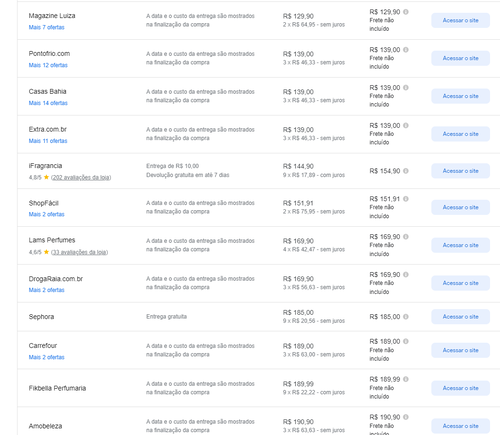 Menor preço segundo o Google Shopping, considerando a volumetria de 200ml
