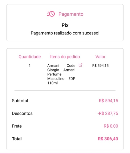 Aqui saiu 321 o de 125 ml, procurei no google. Paguei com pix e adicionei um da paris elysee de 68, o total dava 497, o cupom diz que o desconto é acima de 499, mas foi do mesmo jeito.