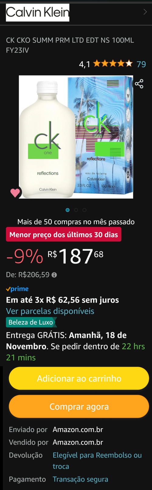 OBS: Para contas novas o perfume está saindo por R$ 167 com o cupom BLACK20APP