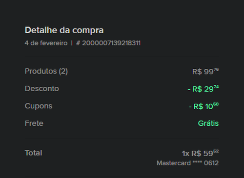 Aqui tá aparecendo de R$49,00. Tem algum cupom?