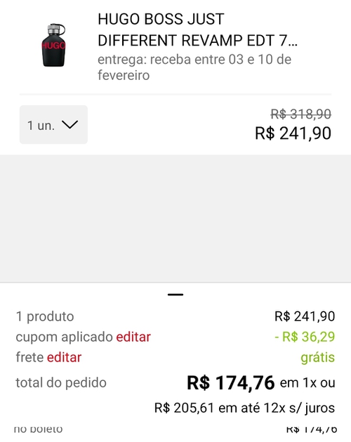 Casas Bahia tá $165. https://m.casasbahia.com.br/hugo-just-different-eau-de-toilette-perfume-masculino-75ml-1517594367.html