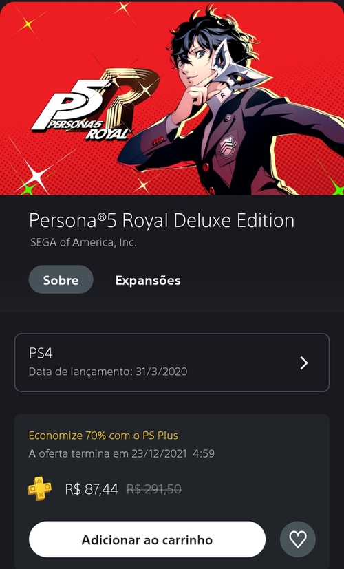 Opa interessante eu joguei pra um senhor kct o persona 5 normal para ps4 (comprei no lançamento) e quando zerei deixei de lado para jogar outros jogos e futuramente voltar só que aí meu ps4 deu pau kkk (2018) quando vi que havia um persona 5 royal achei meio que sacanagem lançarem o jogo denovo com mais conteúdo ao invés de ser só dlc pro jogo base aí agora que comprei um ps5 talvez eu acabe voltando para jogar esse royal por esse preço