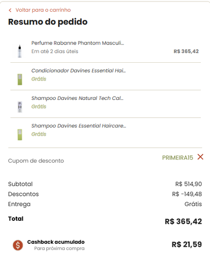 Cupom PRIMEIRA15 para contas novas. Saindo por R$ 365,42