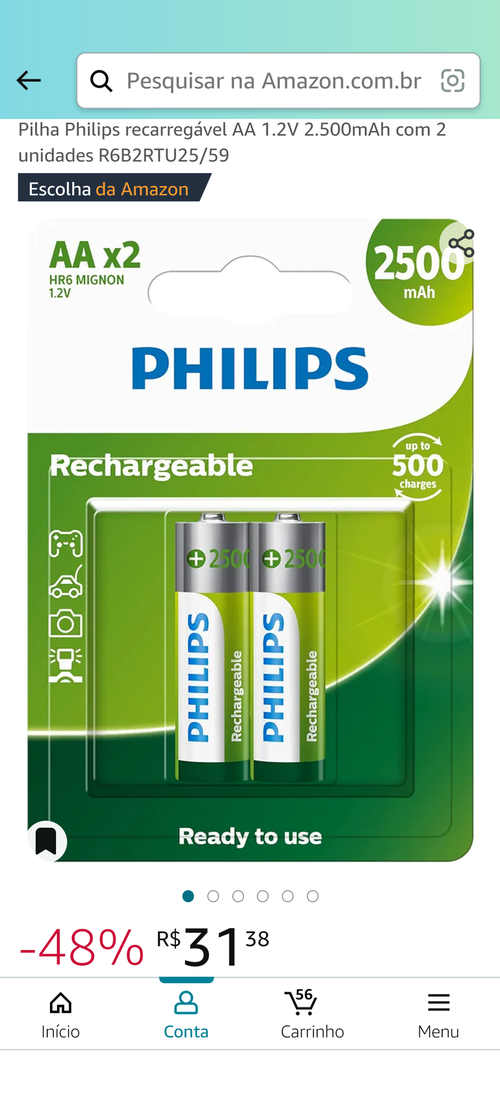 Comprei faz um tempo. Não recomendo. A carga n condiz 2.500, acaba muito mais rapido que de outras marcas. A duracel dura pelo menos o dobro. Mas isso foi comigo.