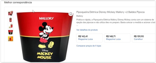 Pipoqueira Elétrica Disney Mickey Mallory + 2 Baldes Pipoca | R$ 80