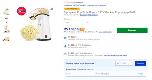 Pipoqueira Pop Time Branca 127V Britânia Poptimepip B-02