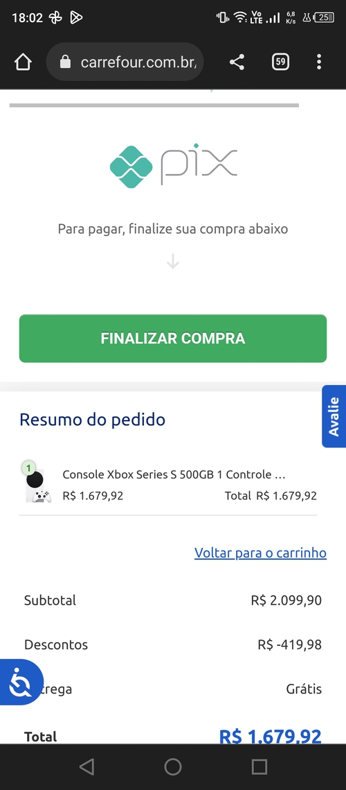 Qdo chega no pagamento, se mudar para o pix, tem desconto de 419,98, chegando ao valor de 1679,92!!!