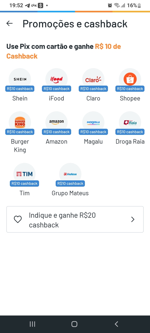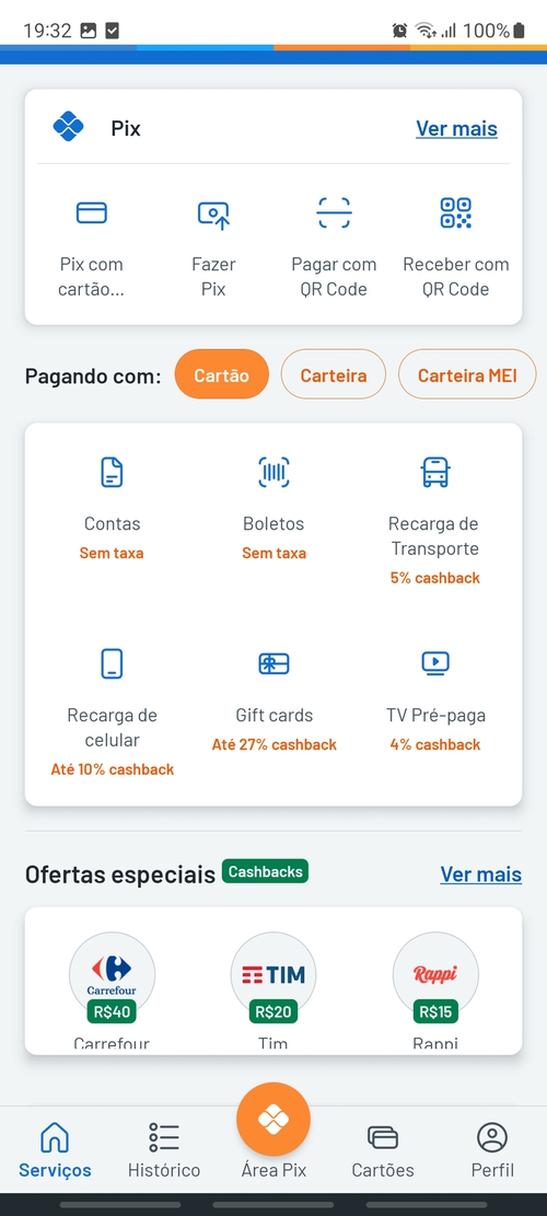 3. a opção do Carrefour vai aparecer numa aba de "Ofertas especiais (Cashbacks)", de cara você já vai ver o desconto, clique lá e vai aparecer a opção pra você pagar por PIX com QR code e depois selecione pra digitar, e cole o código lá.