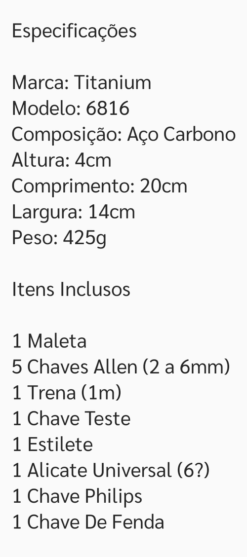 Ferramentas ruins, mas quebra o galho para aquela pessoa que agora mora sozinha e não sabe nada de ferramenta e etc