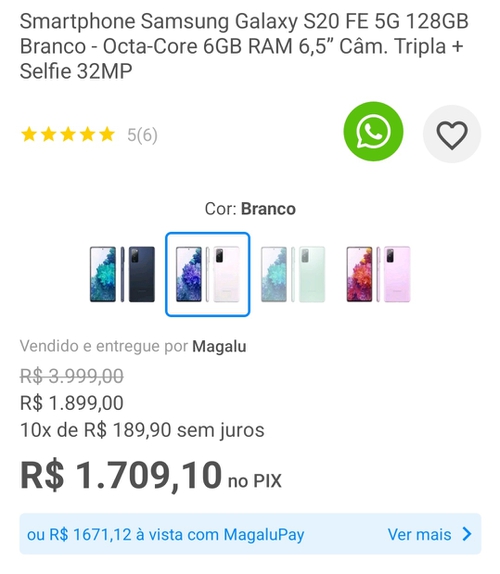 o foda que esse nem fone vem junto... eu tenho o s20 fe normal e não sei se compensa trocar só pelo 5G e com câmera levemente pior