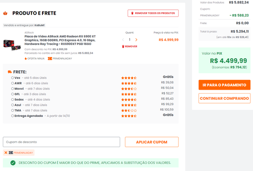 Fix pelo PRIMENINJADAY e deu certo, frete grátis e descontão - saiu por 4500