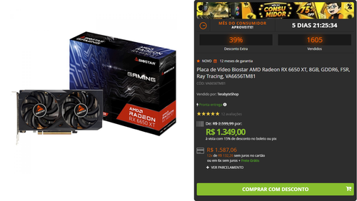 Placa de Vídeo Biostar AMD Radeon RX 6650 XT, 8GB, GDDR6, FSR, Ray Tracing, VA6656TM81