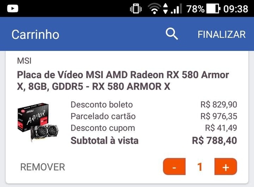 RX 580 8gb - R$ 823,99