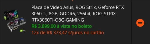 Peguei uma RTX 3060 Galax 1 mês de uso e NF na OLX por 3K e lá parcela sem juros, fora os cupons de descontos, sugiro vocês pesquisarem por lá tbm ..