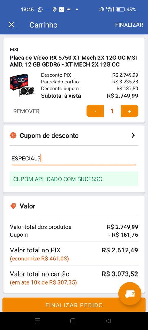 Nos eua rx 6700 10gb por 299 dolares, deixo aqui para vocês comparar como estamos pagando bem para estas lojas.