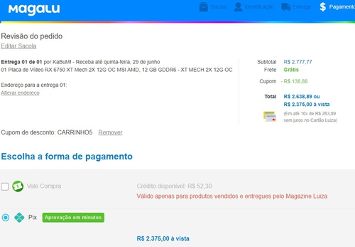 Aqui foi. Faz tempo que espero por essa promoção. Agora é devolver a minha rx 6600 kkk