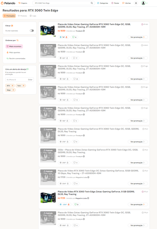 Melhor pegar a RTX 3060 da MSI que dá 36 meses de garantia e tá custando R$1.900,00.