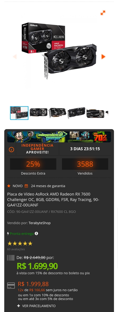 Não to recomendando p/ ninguém comprar algo na Terabyte.