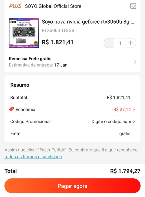nunca mais tivemos promoções boas no aliexpress igual na BF. tinha 3080 por 2700 e 3070 por 1700