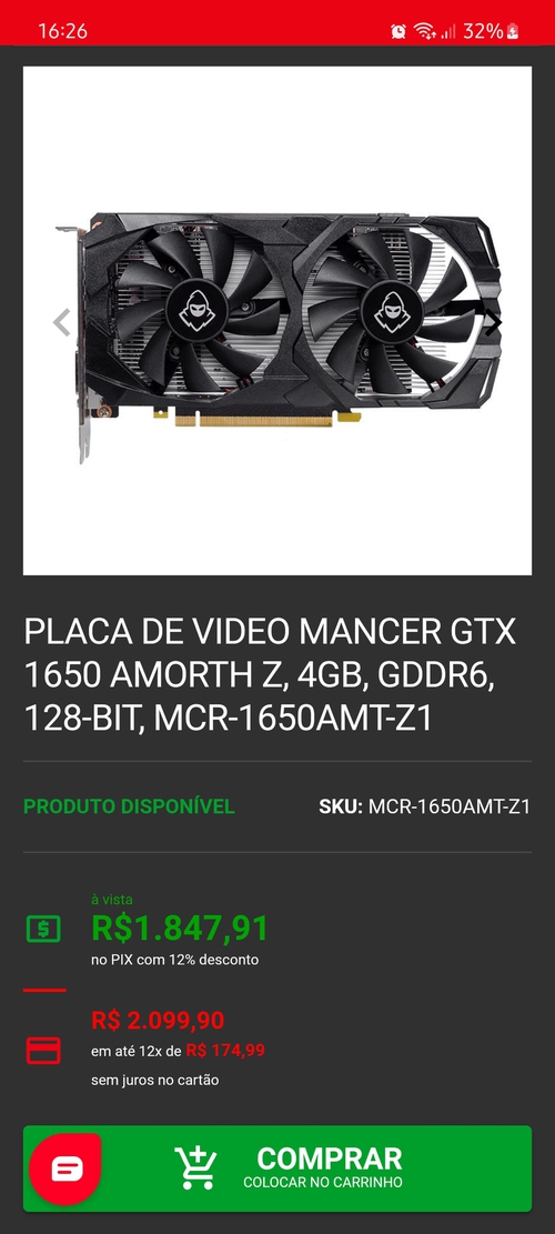 Ainda acho mais em conta comprar a 6500xt la por 1100 se nao for usar pra stream/3d