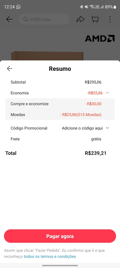 Placa de video Radeon RX 580 8Gb - ELSA [ALIEXPRESS]