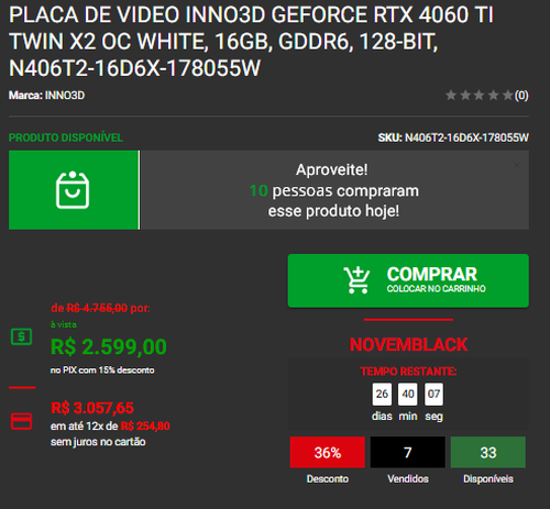 Se comparar, a 3060 TI tem praticamente o mesmo desempenho por R$500 a menos. Salvo raríssimos jogos, ela não performa os 20% a mais que custa a 4060 TI.
