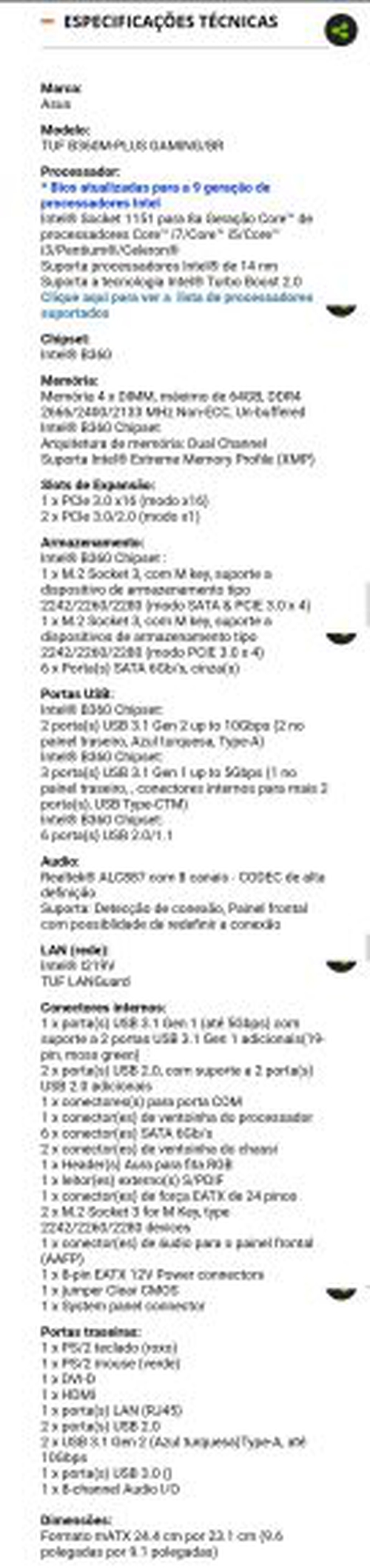 Placa Mãe Asus TUF B360M-Plus Gaming/BR, Chipset B360, Intel LGA 1151, mATX, DDR4
