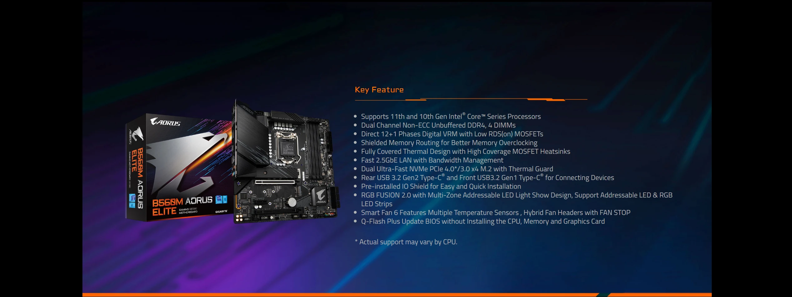 Placa mãe Gigabyte B560m Aorus Elite Micro Atx Intel Ddr4 5333(o.c.) 128g Sata M.2 Support Lga 1200.
