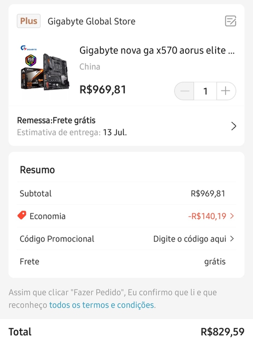 Não é melhor comprar uma asrock com os mesmos specs na terabyte por 100,00 a mais e garantia BR além de não precisar esperar pelo menos 20 dias?