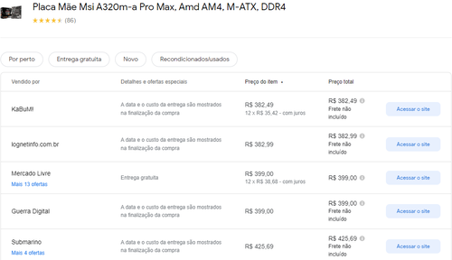 Menor preço segundo o Google Shopping