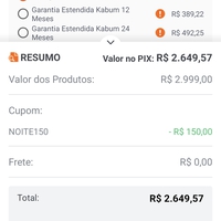 Valor no pix ou 2709 parcelado no cartao nubank