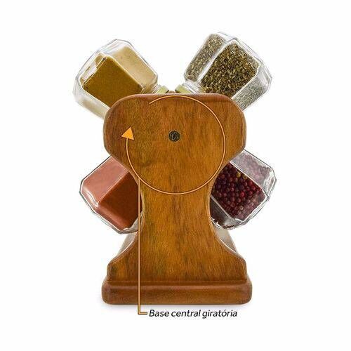 Porta Temperos Giratório Em Madeira 12 Potes por R$ 117