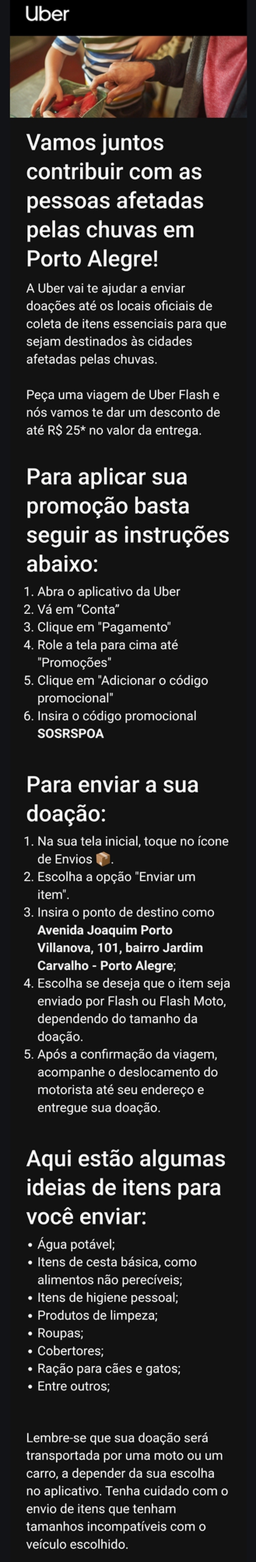 (PORTO ALEGRE) SOS Rio Grande do Sul: A Uber ajuda a entregar sua doação!