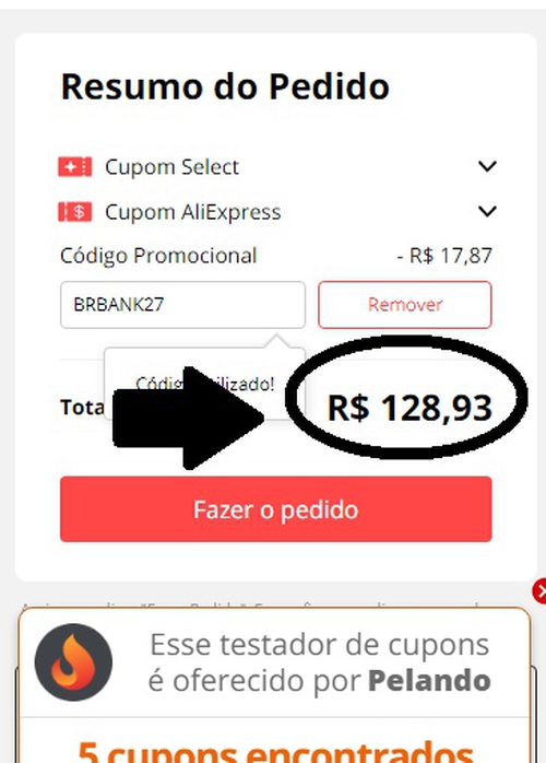 depois que pegar os cupons direitinho, o pagamento no carrinho vai dicar da seguinte forma: