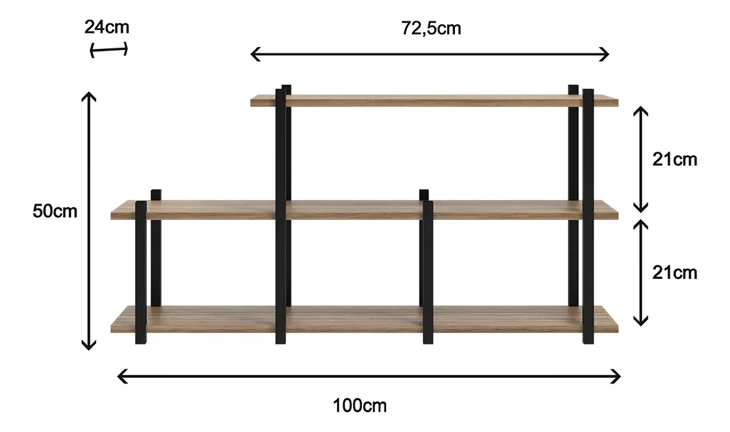 Prateleira De Parede Suspensa Estilo Industrial Ferro E Madeira Laminado Com Preto -