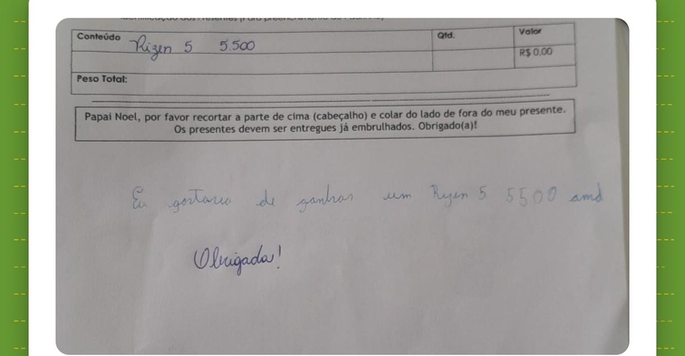Eu até ia adotar, mas na moral, tá insalubre... De 30 cartas, 25 são dos pais escrevendo e pedindo coisas absurdas pra criança de 3~7 anos.... Ps5, notebook, iPhone, celular, e até CNH para o pai, sim, na carta o filho de 3 anos pedindo CNH para o pai trabalhar, deveria ter um filtro para postagem dessas cartas, acabei desistindo.