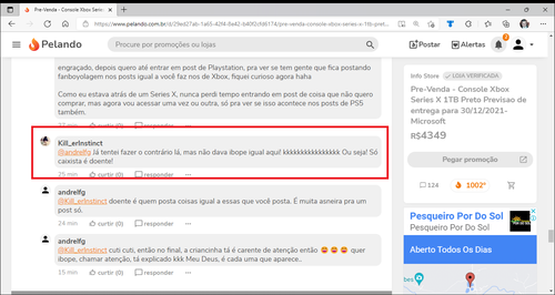 O biscoiteiro que está fazendo graça, até hoje só postou uma "promoção", advinhem de que?PS5, que foi um fiasco pelo preço. O cidadão fica no Pelando promovendo uma marca como autoafirmação de que escolheu o melhor console do mercado, fazendo Spam e atrapalhando o pessoal.