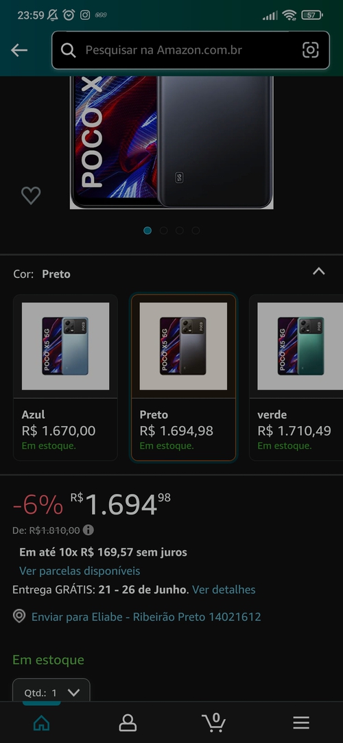 O azul está R$1722,00.