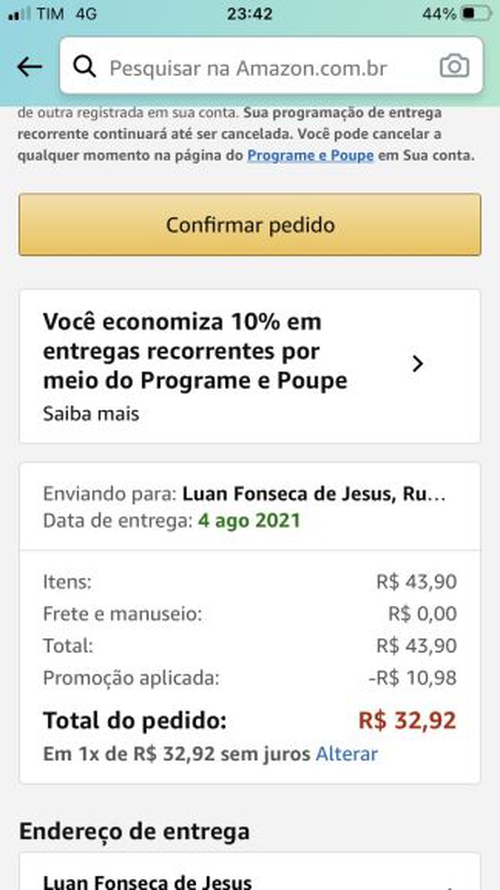 Desconto aparece na hora de fechar o pedido