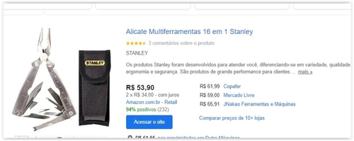- Menor preço de acordo com o Google