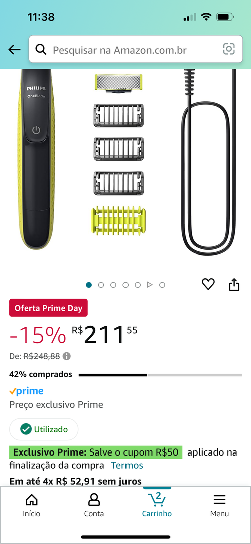 Usei esse cupom sme querer em outro produto de menos de 50,00 e não tive desconto. Não consigo recuperar?