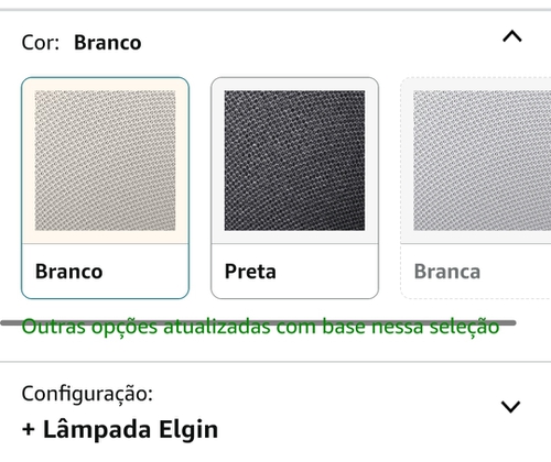 Primeiro selecione a cor "Branco" para mudar para a promoção com a lâmpada e depois pode manter nela ou escolher na cor preta.