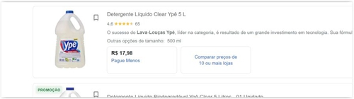 - Menor preço de acordo com o Google ( R$ 1,67/500 ml)