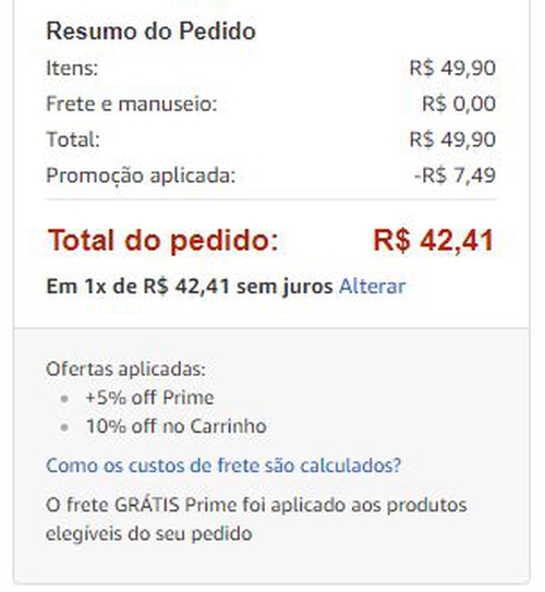 Comprando 10 unidades com Prime tem 15% de desconto, saindo a R$4,24 cada.