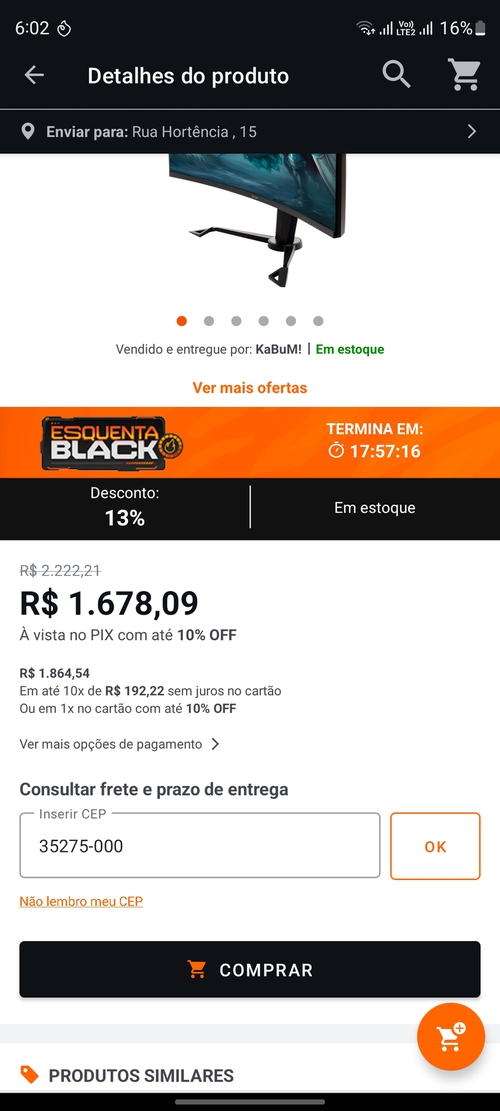 Frete grátis aqui no sudeste