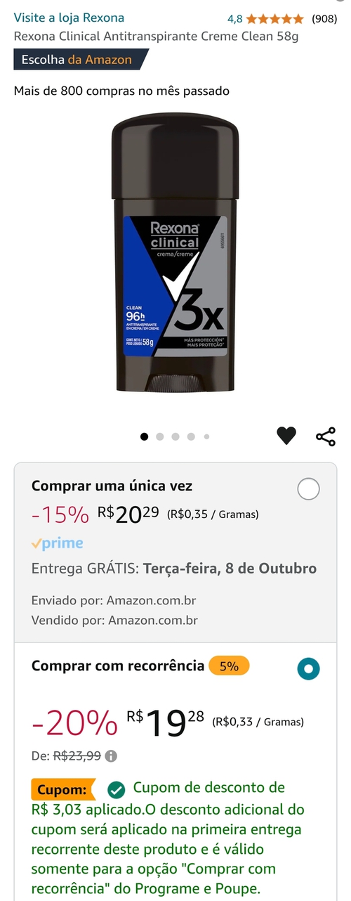 [Prime/ Rec] Rexona Clinical Antitranspirante Creme Clean 58g