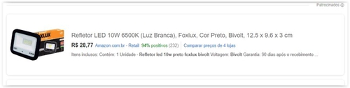 - Menor preço de acordo com o Google